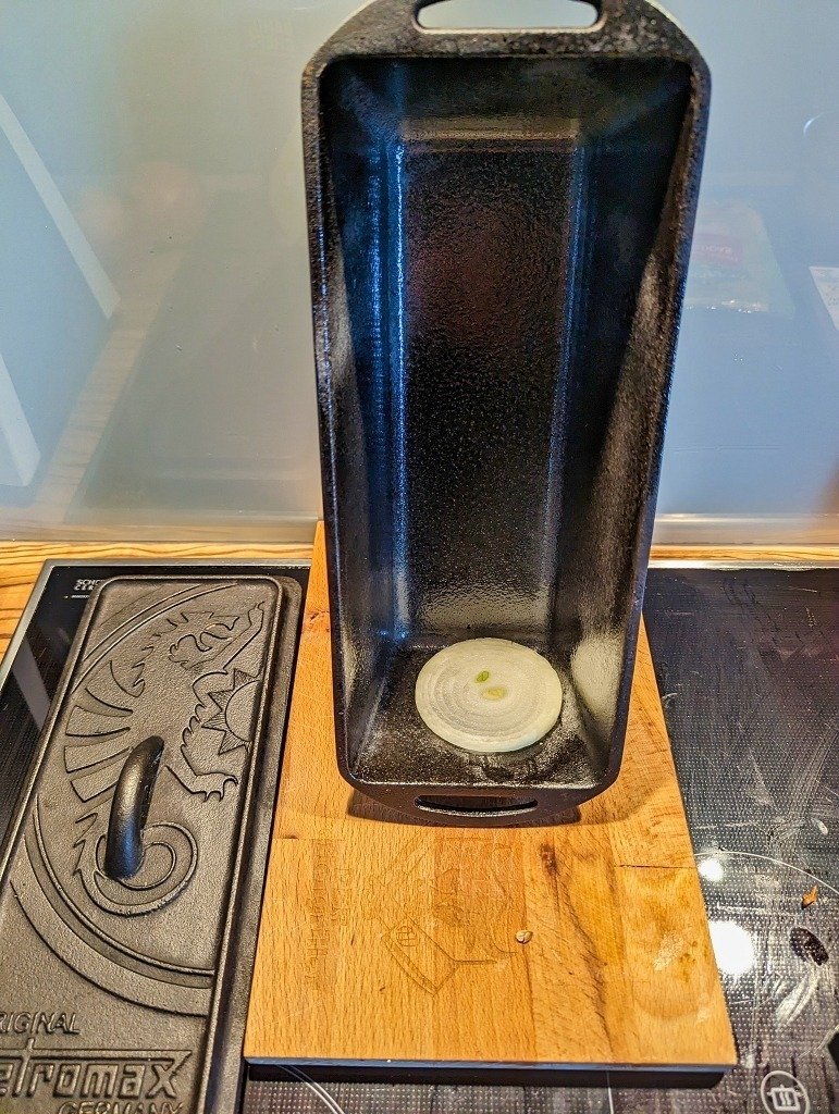 - Der gefettete Dutch Oven wird senkrecht gestellt zum schichten
