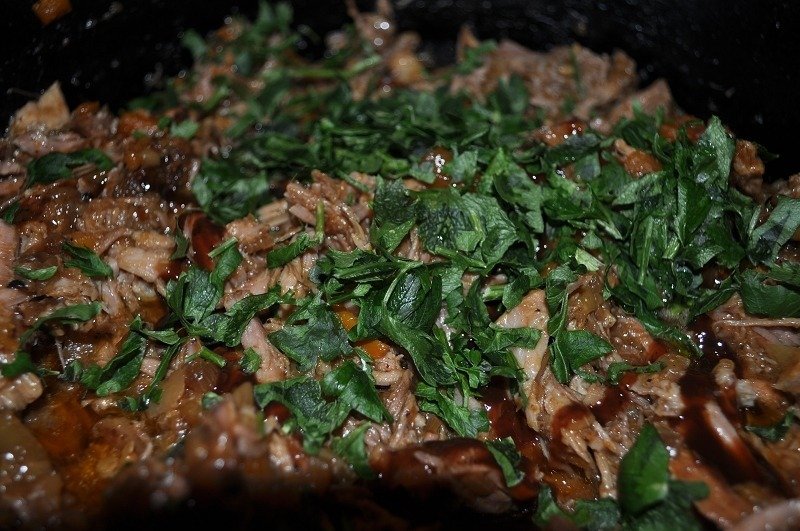 - und mit Gewürzen und Petersilie verfeinert, wer mag kann dies auch mit Koriander machen.