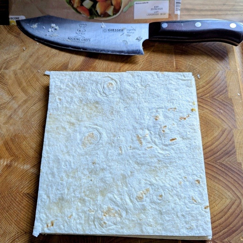 - 6 Tortillas 25 cm Durchmesser, ergibt 17 cm Quadrate