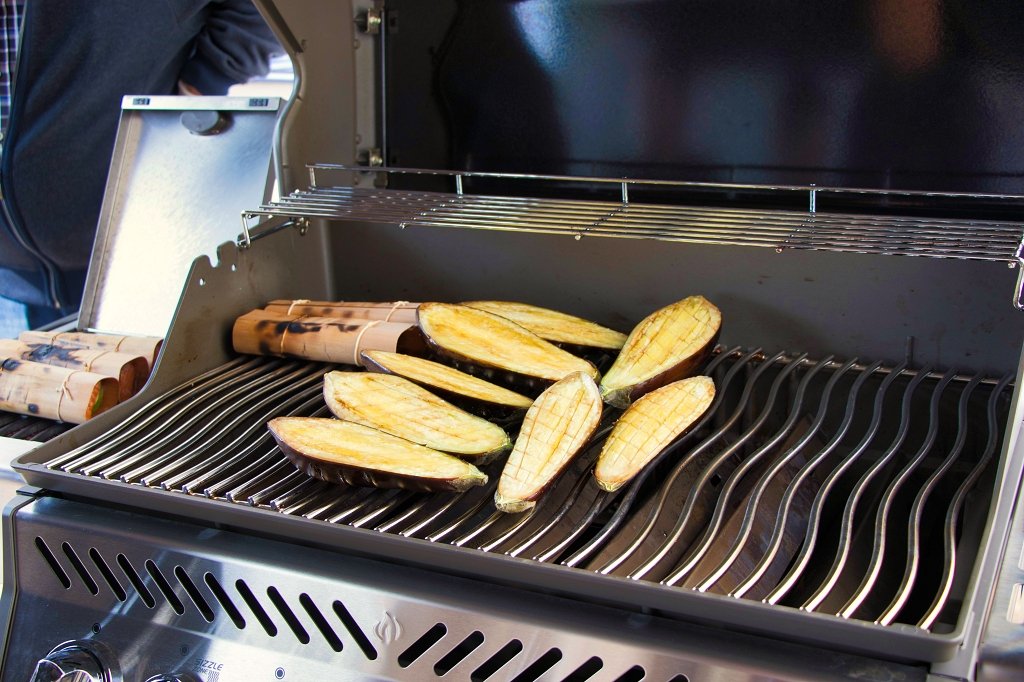 - Die ganzen Auberginen für gut 30 Minuten indirekt bei 200 Grad grillen bis sie komplett weich sind. Ab etwa der Hälfte der Zeit die halbierte Knoblauchknolle hinzugeben und mitgrillen. Die Auberginen enthäuten und die Masse mit den Gewürzen, Öl, S&P würzen. Mit Hilfe eines Stabmixers pürieren und kurz ziehen lassen. Nach Belieben kann man noch eine Chili und Petersilie beigeben. Wenns mal schneller gehen sollte oder die Auberginen recht groß sind, kann man diese auch halbieren und vorab leicht salzen.