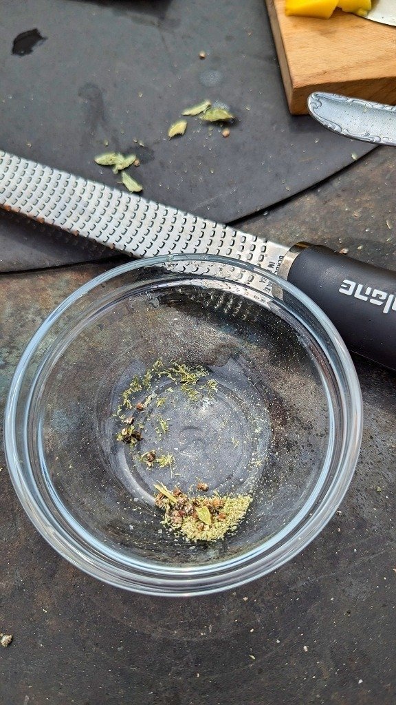 - Kardamom reiben und die Schale mit dem Messer fein hacken