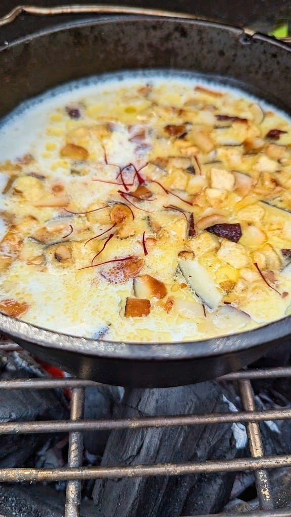 Vergiss alles, was du über klassischen deutschen Milchreis weißt! Mango Kheer ist eine Offenbarung: Viel cremiger, aromatischer und dank der Mango herrlich fruchtig. In Indien wird dieses Dessert traditionell zu Festen wie Diwali serviert – oft stundenlang eingekocht, bis der Reis fast in der gesüßten Milch verschwindet. Ich zeige euch heute meine Version aus dem Dutch Oven: Mit Safran, Kardamom und einer ordentlichen Portion Nüssen.