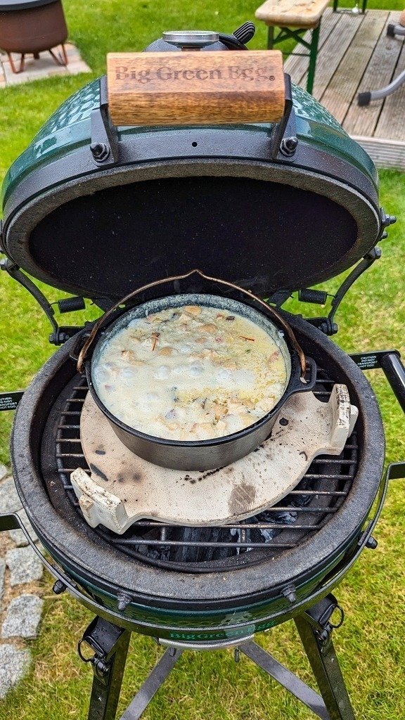 - Je nach Reissorte und gewollter Konsistenz weitere 5-15 Minuten kochen lassen, gerade am Ende unbedingt aufpassen das der Reispudding nicht einbrennt. Im Keramikgrill kann man die Temperaturregelung nun komplett schließen.