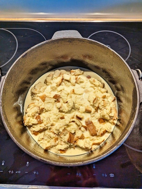 Wie wird der Bread Pudding oben knusprig und innen saftig?