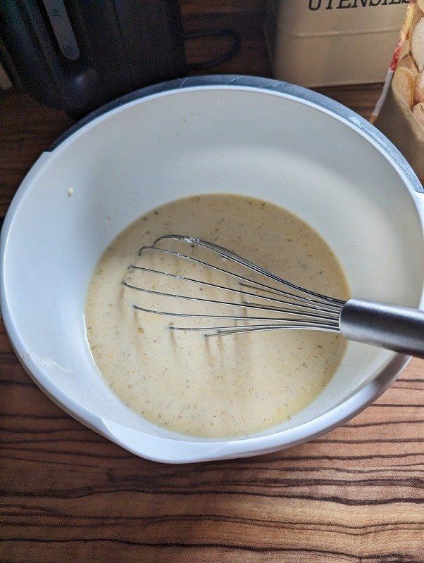 - Eier, Milch, Sahne, TNT und den weißen Zucker zu einer Eiermilch aufschlagen4 Eier, 400 ml Milch, 250 ml Sahne, 75 g Zucker