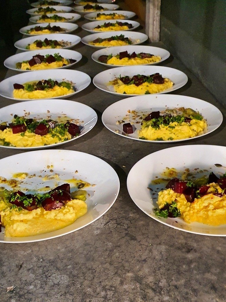 Polenta mit roter Beete und Rosenkohl