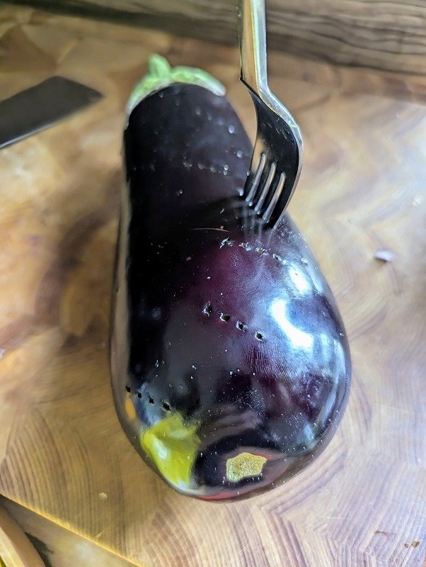 - Auberginen mit der Gabel einstechen, dies verhindert das platzen wenn man es in die Glut legt.1 Aubergine