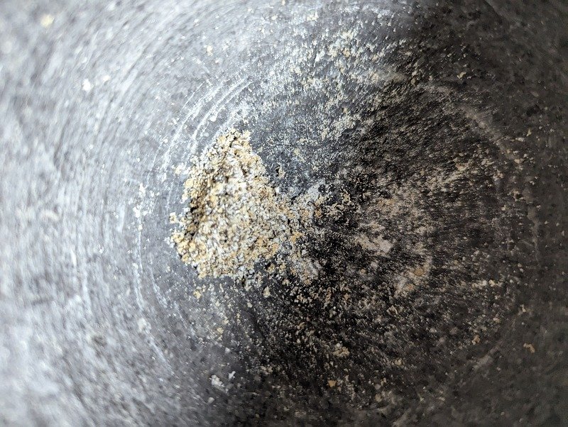 - Die Schalen aus dem Mörser entfernen.