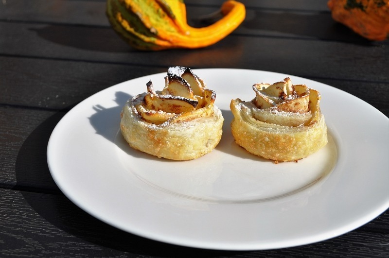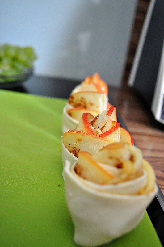 - Ei und Milch verquirlen und um die einzelnen Apfelrosen aufpinseln