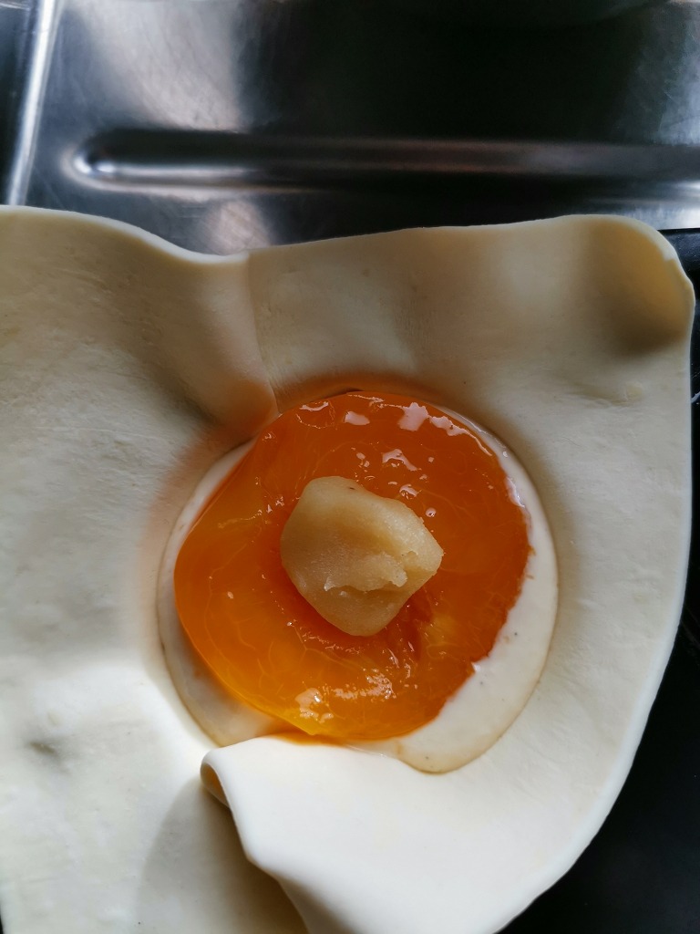 - Pfirsichhälfte hineinlegen