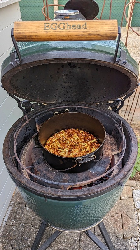 - Zuerst wird der Grill auf mittlerer direkter Hitze vorgeheizt und der Dutch Oven mit aufgewärmt.