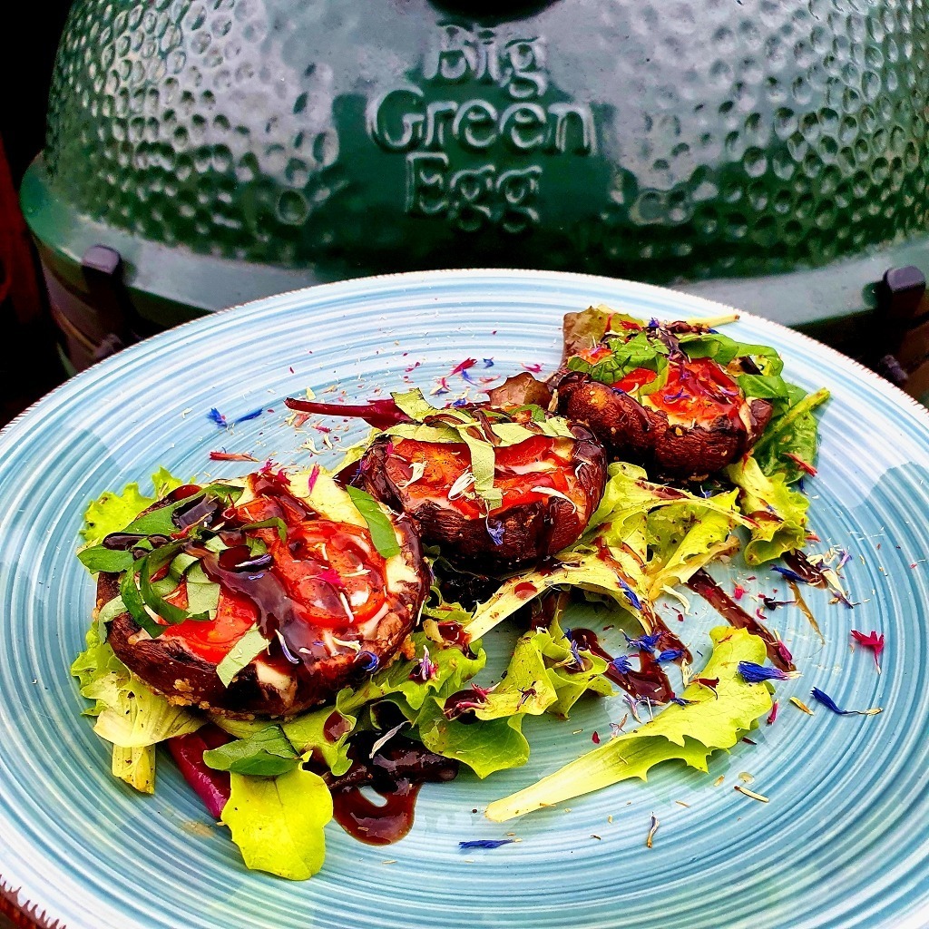 Pilze vom Grill dürfen bei keinem Grillabend fehlen, eines meiner Lieblingsrezepte sind die Caprese Style, Die Fruchtigkeit der Tomate, gepaart mit der Cremigkeit des Mozzarella, als besonderes Schmankerl die Knoblauchbuttermischung, welche auf die Pilzköpfe kommt. All das macht dieses Rezept besonders. Man kann die Pilze als vegetarischen Zwischengang oder als Beilage servieren, ich empfehle dir die Pilzköpfe als Hauptdarsteller auf ein wenig Pflücksalat zu servieren, denn das rundet das Gericht vollends ab.