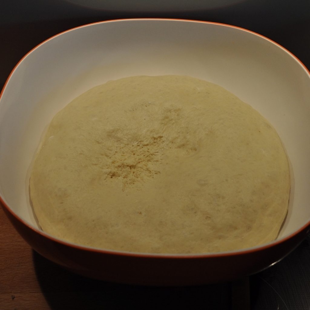 - Mindestens 1 Stunde gehen lassen bis sich das Teigvolumen verdoppelt hat.