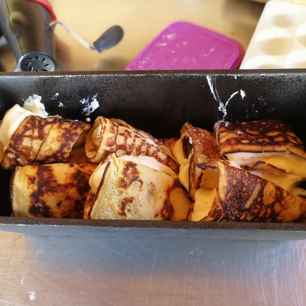 - Palatschinken wenden und fertig backen. 8 weitere Palatschinken backen.