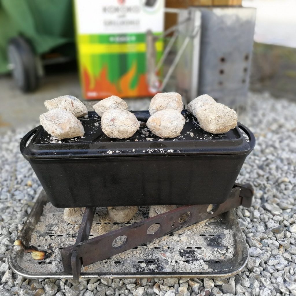 - Palatschinken mit einem Setup von 8-10 Kohlen oben und 4-5 Kohlen unten backen. Die Angabe der Kohlenmenge gilt für Kokoko Eggs von Mc Brikett.