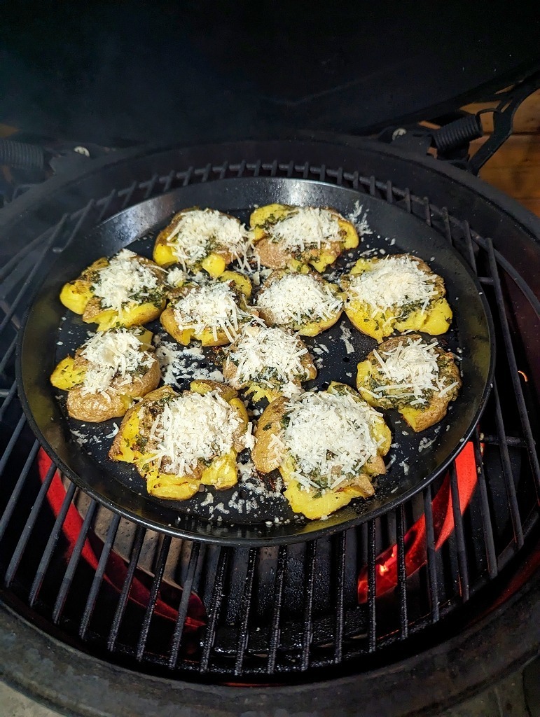 Eigentlich sind diese bekannt als Smashed Potatos und es gibt sie in vielen Variationen, ich mach sie am liebsten mit Knoblauch und Parmesan.