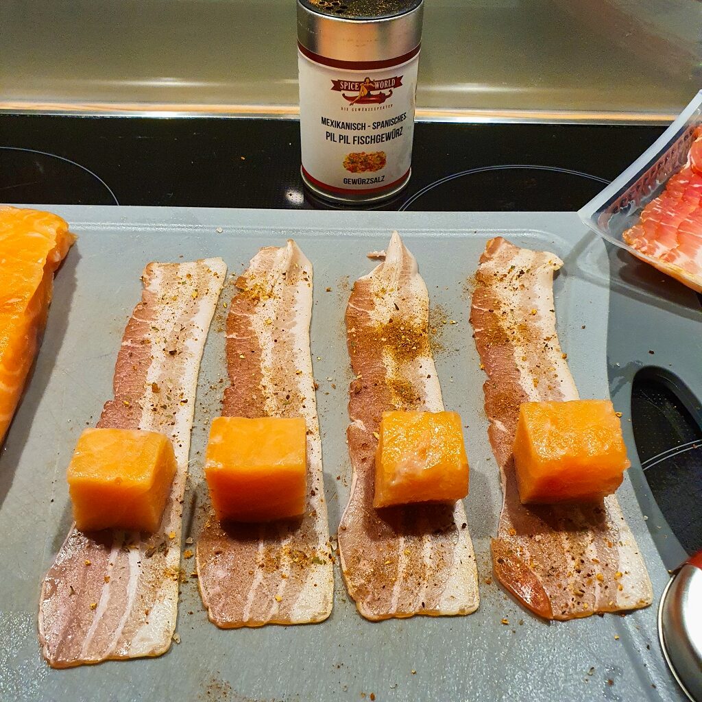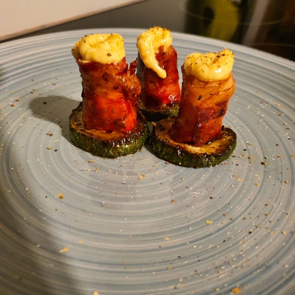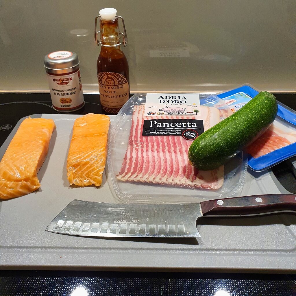Heute wird der Lachs als Starter oder Snack vom Grill zubereitet, umwickelt mit Speck und serviert auf einer Zucchinischeibe macht er sich perfekt als Fingerfood. Wer kann diesen Lachspralinen schon widerstehen!?