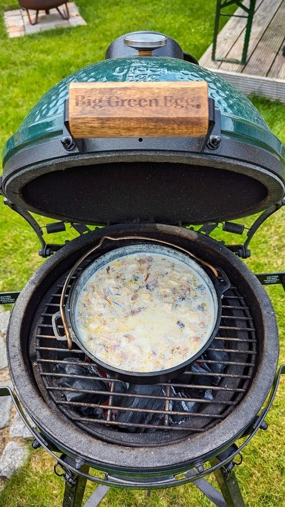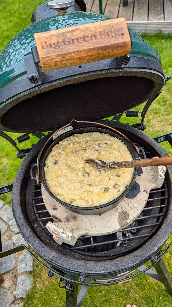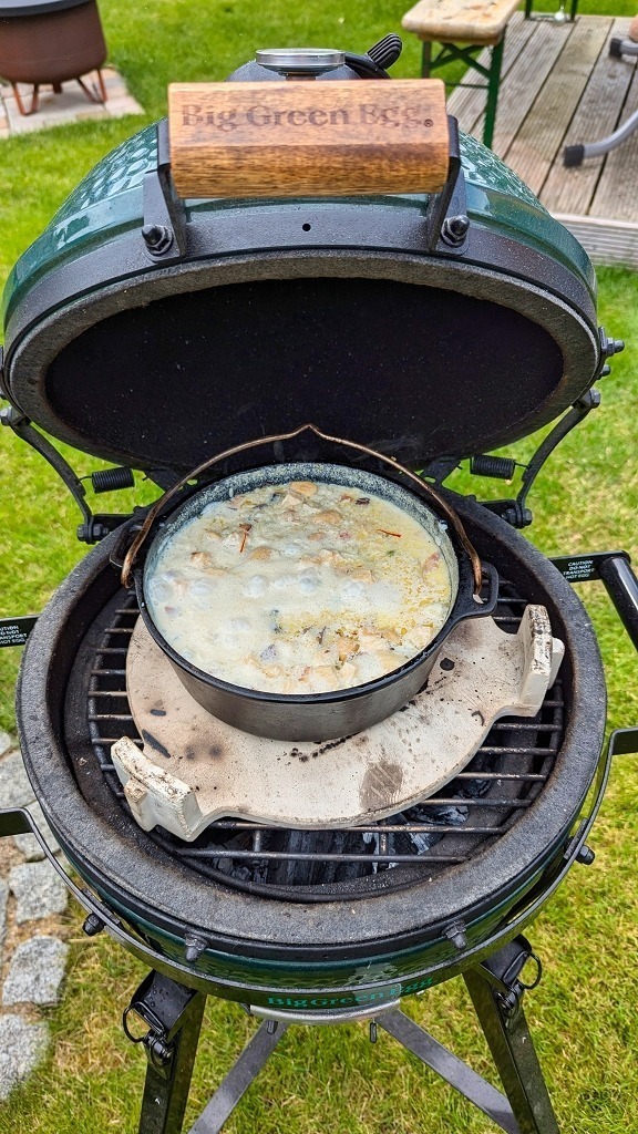• Je nach Reissorte und gewollter Konsistenz weitere 5-15 Minuten kochen lassen, gerade am Ende unbedingt aufpassen das der Reispudding nicht einbrennt. Im Keramikgrill kann man die Temperaturregelung nun komplett schließen.