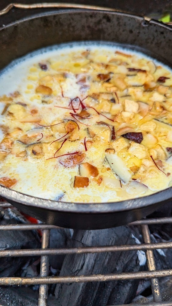 In der Grundversion des Rezeptes kommt neben Milch und Zucker auch nicht mehr rein, ich habe mich an der südindischen Variante orientiert und Trockenfrüchte, Safran als auch Mango hinzugefügt.