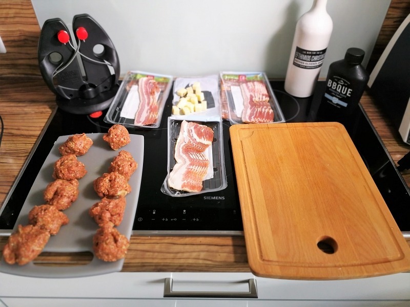 - Jetzt kommen die Moinkballs auf den Grill, dieser bekommt das Setup für indirektes Grillen und wird auf ca. 180 Grad eingeregelt.
