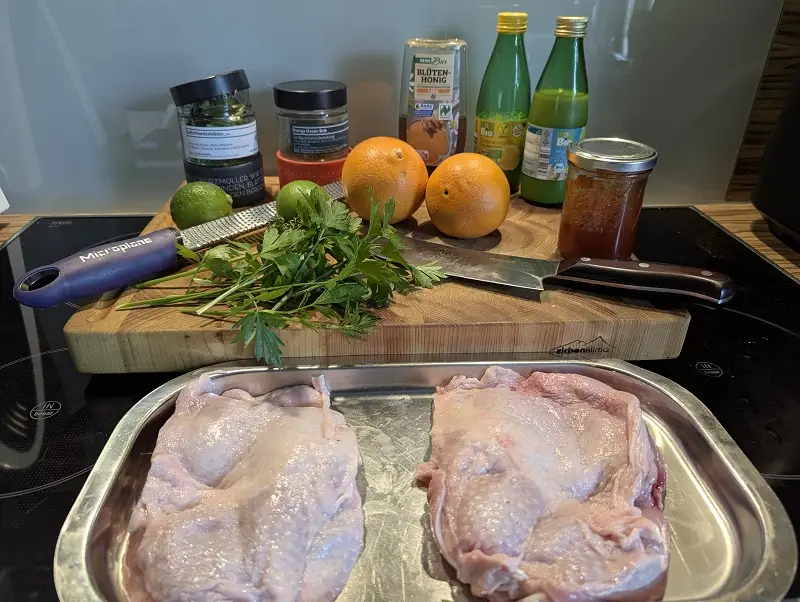 - 2-4 Stück entbeinte Hähnchenkeulen