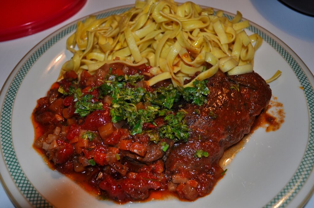 wie der Name schon verrät kommt der Klassiker aus der italienischen Region Lombardei, genauer gesagt aus Mailand. Der Name Osso buco heisst übersetzt Knochen mit Loch und wird klassisch mit Kalbsbeinscheiben gemacht [*]. In Deutschland wird häufig auf Rinderbeinscheiben zurückgegriffen, da diese leichter erhältlich sind.