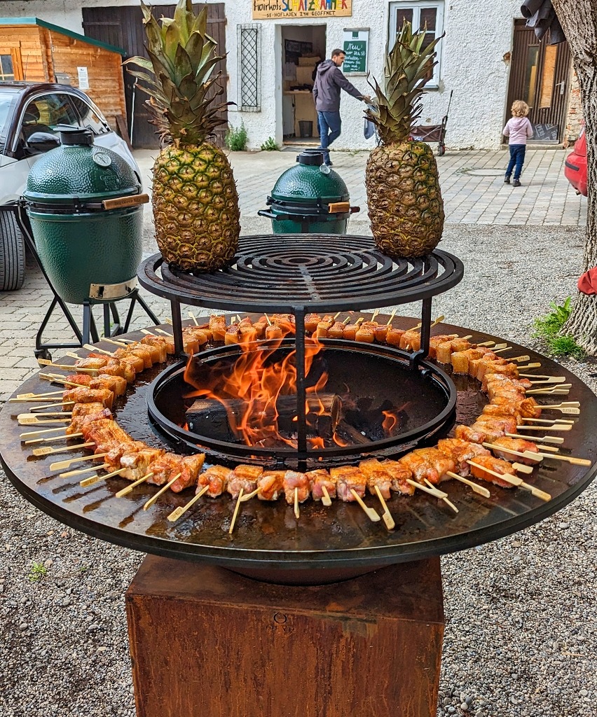 Am liebsten bereite ich dieses Fingerfood auf einer Feuerplatte zu, denn da klappt es am einfachsten, eine Zubereitung auf einem normalen Grill steht aber auch nichts im Wege, nur die Portionen sind entsprechend kleiner die auf einmal zubereitet werden können.