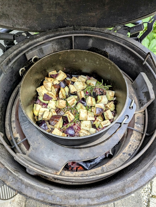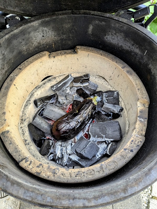 Die Zubereitung ist Daal typisch in zwei Phasen gegliedert, man legt immer mit dem anbraten der Gewürze los und gibt dann die restlichen Zutaten hinzu. Hier kommt die Besonderheit dieses Gerichtes zum tragen, denn durch das Garen der Aubergine auf den Kohlen, geben diese später ein rauchiges Aroma ab. Die Bohnen im Rezept stammen aus der englischen Küche, diese geben dem Daal eine natürliche Sämigkeit.