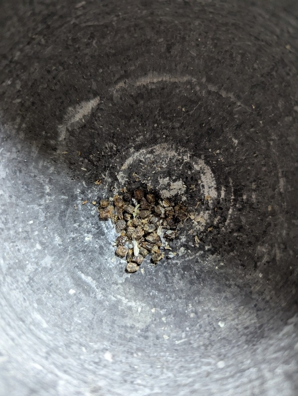 - Die Schalen aus dem Mörser entfernen.