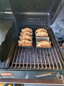 Wenn die Ränder leicht dunkel werden, sind die Tacoschalen fertig