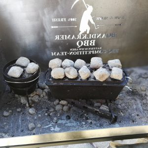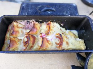 Für den Überguss alle Zutaten verquirlen und über die Palatschinken gießen. Palatschinken mit einem Setup von 8-10 Kohlen oben und 4-5 Kohlen unten backen. Die Angabe der Kohlenmenge gilt für Kokoko Eggs von Mc Brikett.