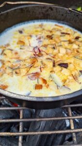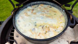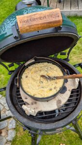 Je nach Reissorte und gewollter Konsistenz weitere 5-15 Minuten kochen lassen, gerade am Ende unbedingt aufpassen das der Reispudding nicht einbrennt. Im Keramikgrill kann man die Temperaturregelung nun komplett schließen.