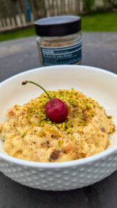 Anrichten mit dem Honeyballgewürz und den gehackten Pistazien